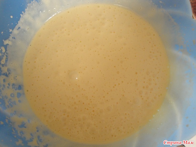 Для начала взбиваем яйца с сахаром. Смотрим на часы и тратим на наше взбивание 15-20 минут (если в доме есть дети, привлекаем детей). У нас должно получиться что-то на подобии вот такой консистенции