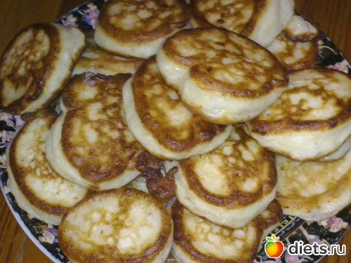 выкладывала с пышными оладьями, что я не устояла и напекла своих. Но у Ани оладьи с творогом и яблоком, а у меня