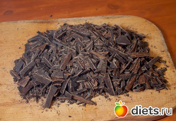 Темный шоколад мелко рубим или ломаем на кусочки.
