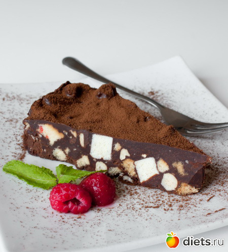 Ставим в холодильник для застывания, на 3 часа. Затем вынимаем из формы, кладем на блюдо и посыпаем какао. До подачи держим в холодильнике.