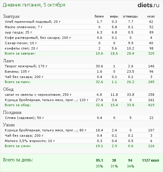 но все же до 30-20-50 далековато...жиров многовато, а углеводов недобор.