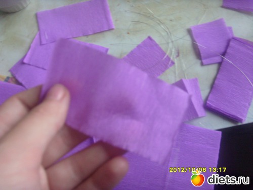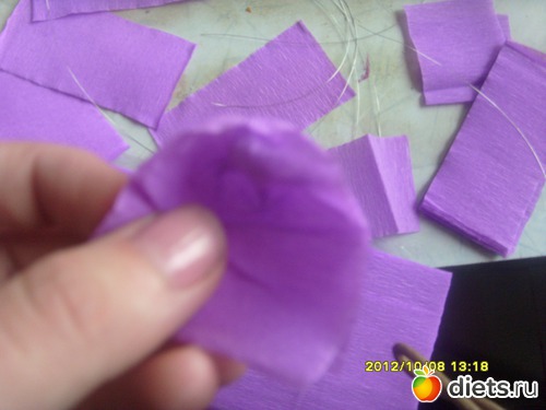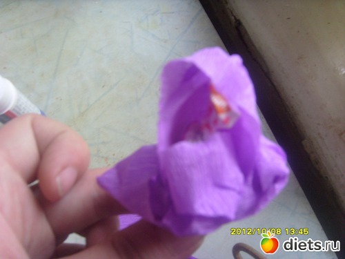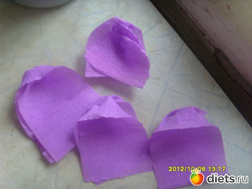 а потом довавляем лепестки по кругу (3-4 лепестка)+вставляем зубочистку между лепестками и приклеиваем скотчем.