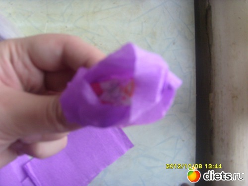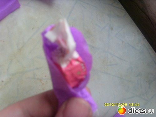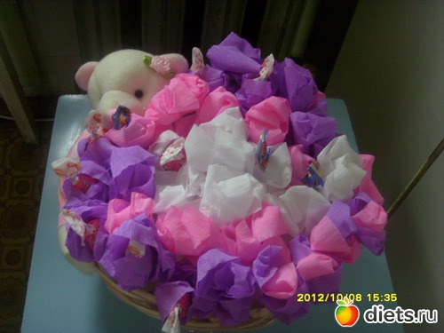 кстати, не обращайте внимание на мой выбор конфет. моя мамочка любит именно эти ("мечта","фея").под них выбиралась и цветовая гамма букета.