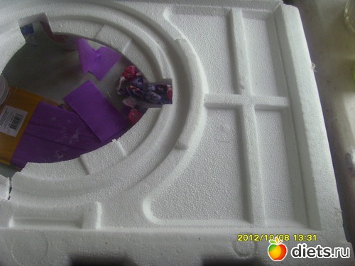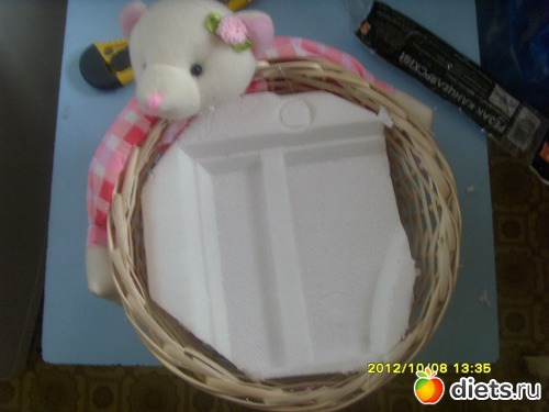 !вырезаю из пенопласта (у меня остался после покупки ноута) нужную форму по размерам корзинки