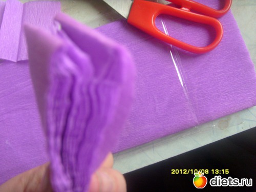 а теперь вставляем ножницы в складки этой полоски и тоже разрезаем