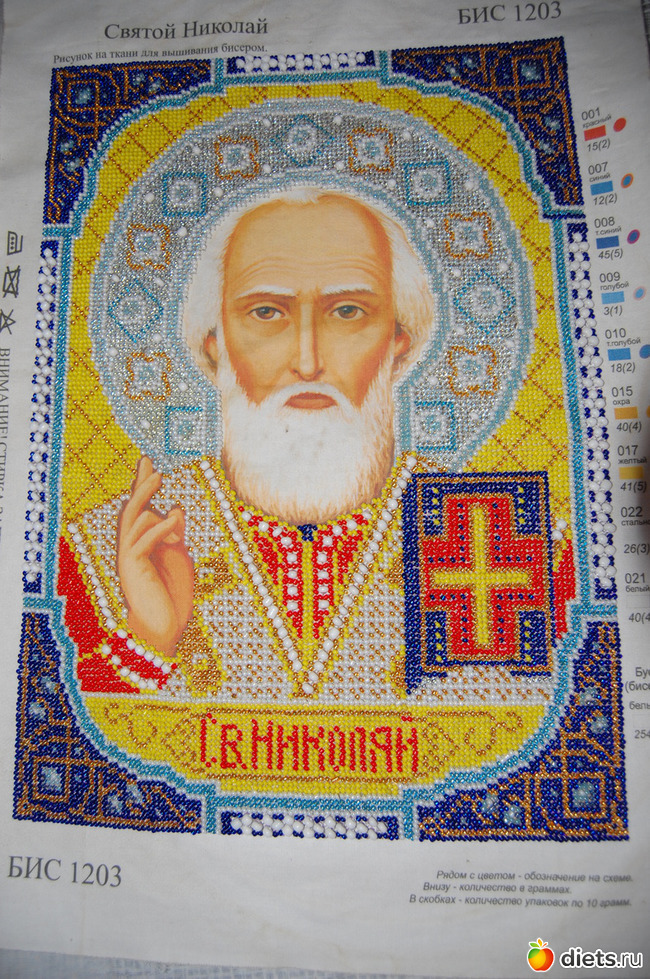 Сейчас вышиваю иконц ювелирным бисером - идет медленно, т.к. мелкий бисер и рисунок. Обычным быстрее было.