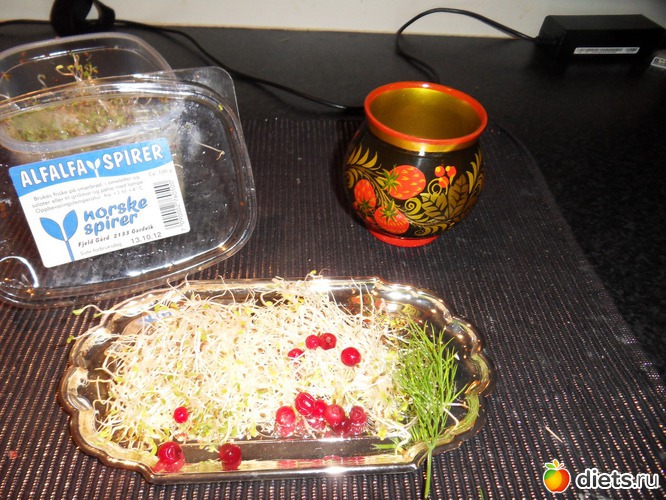 Почему полезно употреблять в пищу проростки люцерны? Потому, что они содержат много витаминов: А, В, В2, С, К, минералы, магний, железо и все 8 существующих аминокислот.