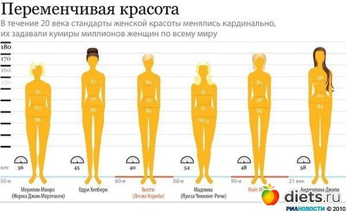 В Древней Греции идеал красоты обожествлялся. Эталоном красивого тела у греков стала скульптура Афродиты (Венеры). Идеал красоты запечатлен в множестве художественных произведений этой эпохи. Тело должно было иметь мягкие и округлые формы. Вот некоторые данные эталона красоты в цифрах: рост 164 см, окружность груди 86 см, талии - 69 см, бедер - 93 см.