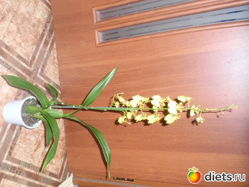 Вчера муж купил мне 2 орхидеи... красотища, у меня уже есть 5 фапленопсисов, а это какой-то другой вид. Как же мои фаленопсисы долго цвели... Купила я их в январе и только в мае они отцвели)) а сейчас опять выпускают свои палки (не знаю как правильно назвать