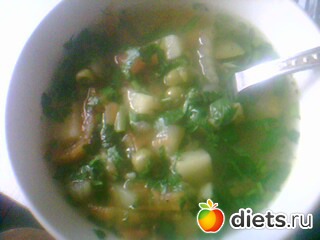 Пообедали с мамой супчиком из картошки, морковки, сельдерея, перчика и горошка:
