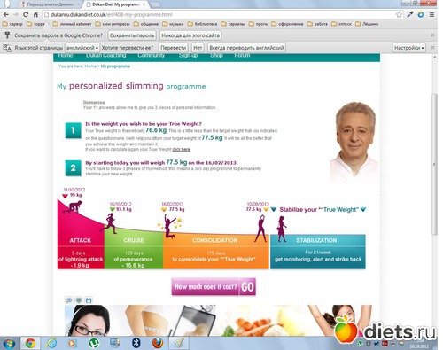 Несколько дней назад я заполнила на сайте дюкановскую анкету. Получается, что если следовать советам доктора, то идеального веса я достигну уже в феврале. А потом до осени - поддерживающая терапия. Типа так
