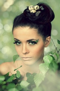 Почему бы не превратиться с обворожительную лесную фею во время празднования Нового 2013 года? Помочь вам создать этот образ может макияж, а именно использование сияющих теней нежных оттенков желто-зеленого, фисташкового или изумрудного цветов. Вы можете смело смешивать различные оттенки, но придерживайтесь правила нанесения теней, когда светлые тона используют для внутреннего уголка глаз, а более темные — для внешнего. Перламутровая жидкая подводка поможет вам лучше подчеркнуть глаза. Что касается туши для век, то здесь будет уместен нефритовый или малахитовый цвет. Быть еще больше похожей на настоящую лесную фею на новогодней вечеринке 2013 вам помогут накладные зеленые ресницы. А вот с помадой лучше придерживаться пастельных и нейтральных оттенков.