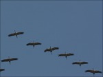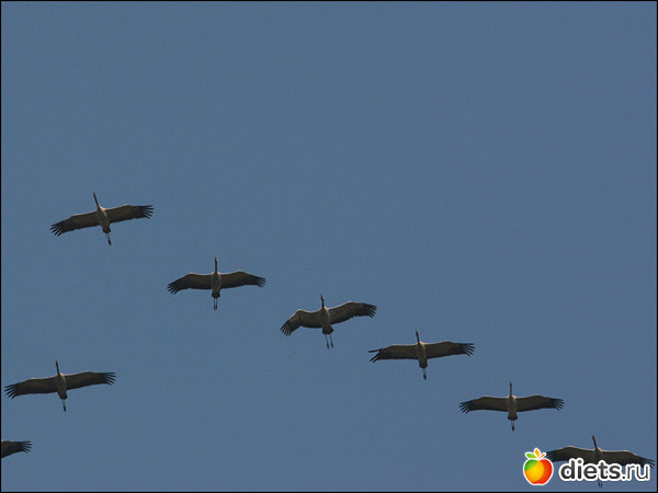 Три клина журавлей летели друг за другом. Три красивых ровных клина. А ка кони курлыкали переговариваясь. Как бед то пели прощальную песню своей родине улетая в дальние кроя. Перелив их голосов так и звучал мелодией в ушах. Все кто шел так и остановились глядя в небеса на стаи журавлей.