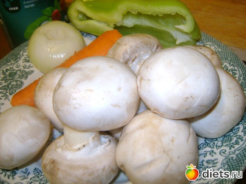 Моем / чистим овощи (лук, морковь, перец) и шампиньоны: