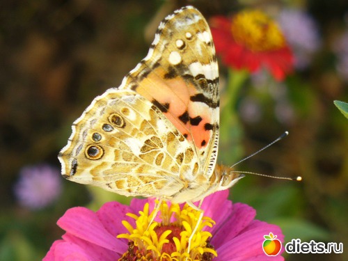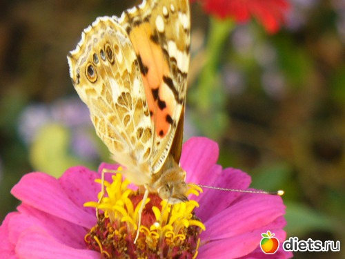 Бабочка фоткаться не хотела, перелетала с цветка на цветок. Но, всё-таки я её зафотила. Вот она, во всех