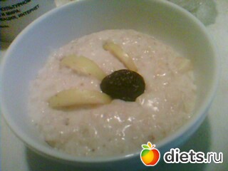 Завтрак - каша: 25 г овсяных хлопьев + 200 мл молока 1,5% + 5 г меда + 2 черносливины и яблоко для красоты:
