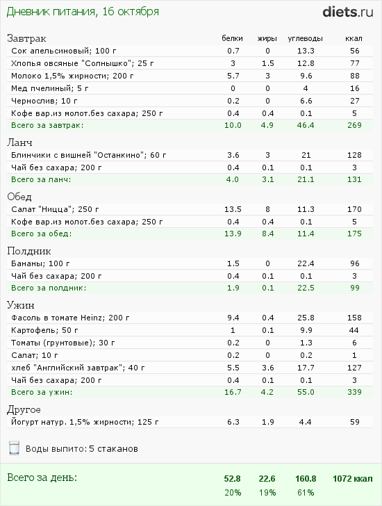 Ну, это - лирика, а вот и суровая проза моей диетической жизни.