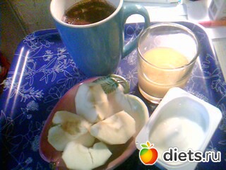 Завтрак - 1 яблоко, 1 нежирный мягкий творожок (125 г.)