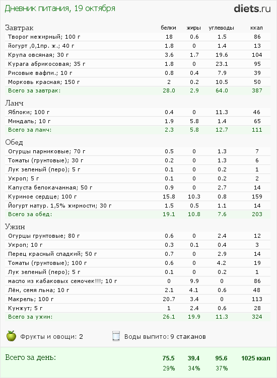 Калорийность продуктов