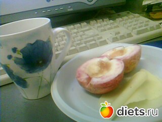Полдник - сыр (17%), яблоко (из сада одной из коллег), кофе: