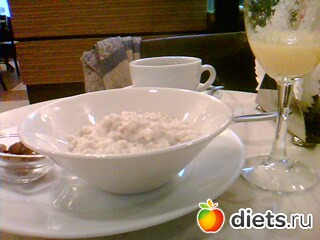 Завтрак - апельсиновый фреш, овсянка (с изюмом - для профилактики остеопороза), кофе