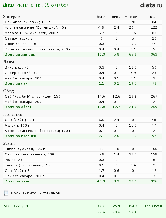 Дневник питания честно заполнила. И не зря - что-то Джудит дает приблизительно, вот и получился небольшой переборчик