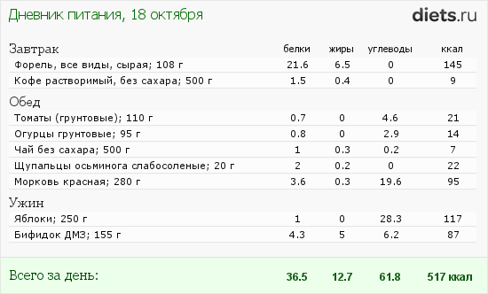 Калорийность продуктов