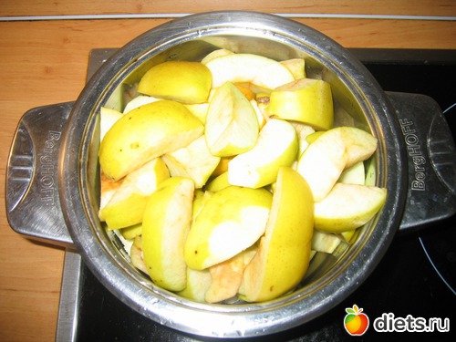 Начинаем с того, что яблоки режем на произвольные кусочки, главное вырезать все нам не нужное