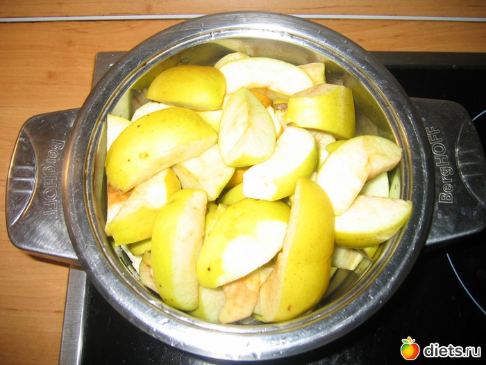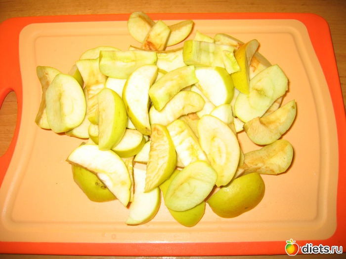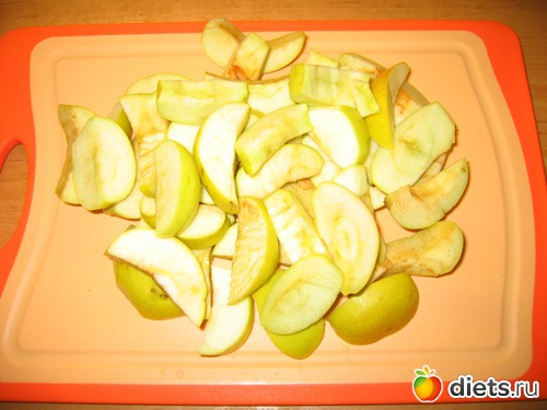 Начинаем с того, что яблоки режем на произвольные кусочки, главное вырезать все нам не нужное