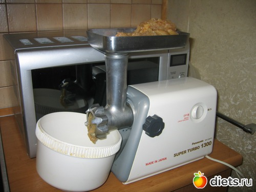 Мягкие яблоки пропустить через мясорубку, или перемешать блендером.