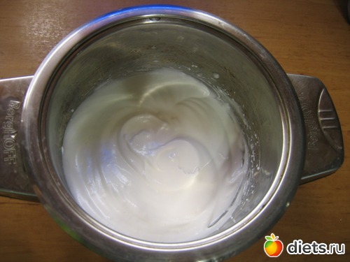 Теперь взбить белок одного яйца с 40 граммами сахара. Я много сахара не люблю, яблоки сами сладкие, а потом мы же стройнеем