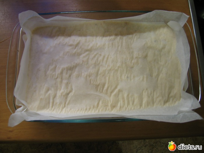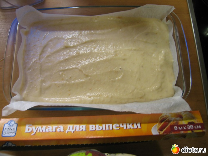 Выкладываем в жаропрочную форму, выложенную бумагой для выпечки.