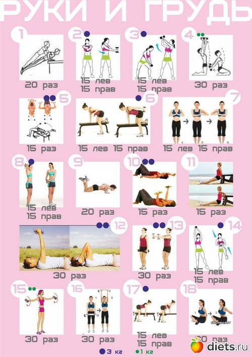 Сегодня я делала 10 упражнений для ног и ягодиц и 10 упражнений для рук и груди.
