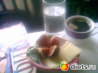 по программе: 25 г сыра и 200 мл минералки, я к сыру добавила еще инжирину и кофе: