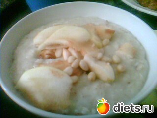 . Поэтому кашка косячная чуток: с яблоком и кедровыми орехами, но их мало.