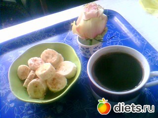 по программе: 1 средний банан, 200 мл минералки - так и сделала, припорошив банан корицей, а минералкой запила кофе: