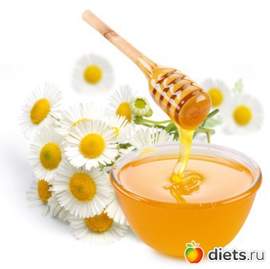 маску с мёдом и ромашкой. Измельчённые цветки ромашки (30 г) заливают кипятком (100 г), и в течение 15 минут кипятят на водяной бане. Потом охлаждают, процеживают и добавляют мёд (1 дес.л.). Маску наносят на влажные и чистые волосы на полчаса, и смывают тёплой водой.