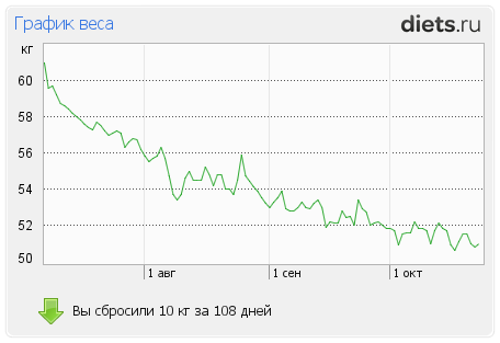 Сейчас прошло почти 4 месяца, ушли запланированные 10 кг. Теперь наедаю уже больше калорий - порядка 1400.