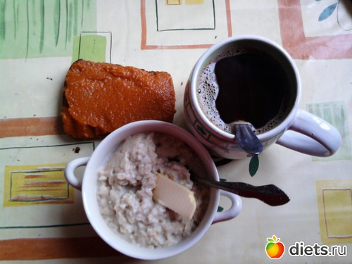 овсяночка, тоненький тост с кабачковой икрой+ кофе.