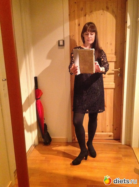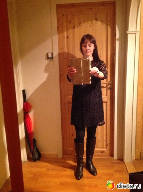 Хорошо будет с ботильонами на высоком каблуке, если носите. Я бы на вашем месте попробовала другой цвет обуви, не черный, а например, серый или фиолетовый. и колготки в тон
