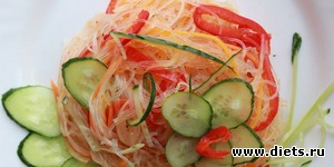 Опробовала вчера новый рецепт приготовления фунчозы. Иногда делаю ее теплым салатом (готовлю так даже в микроволновой печи, немного продушиваю), иногда заливаю раскаленным маслом, а вчера решила овощи замариновать, добавить оливкового масла и в сотейнике разогреть. Получилось вкусно. Хотя многое зависит от подобранных специй.