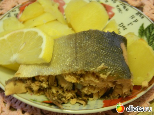 Поместить в разогретую духовку. Готовиться все не более 20 минут. Мы получаем вполне диетическое и, что немаловажно, очень вкусную рыбку.