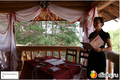 Есть у меня мечта. Свадьбу (и регистрацию, и банкет) можно провести за городом на базе отдыха в деревянном тереме. Я очень-очень-очень люблю дерево. Просто ОЧЕНЬ, как, кстати, и Влад. Выглядит все так