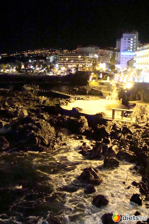 Вечером в Пуэрто де ла Крусе, конечно же, все гуляют, сидят в многочисленных кафе и ресторанчиках,