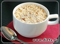 Овсяные хлопья, сваренные на воде, с солью, без масла.
