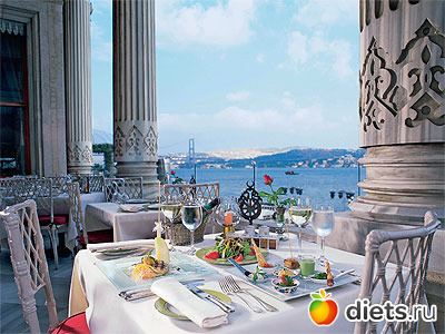 ... За высокими окнами ресторана Tuğra с имперским величием несет свои воды Босфор, и чайки кружат над проходящими мимо катерами. Tuğra – ресторан оттоманской кухни – находится в настоящем султанском дворце у самой воды, и его обитатели много веков предпочитали попадать домой именно с Босфора (в нынешние времена тоже, теперь здесь отель Çırağan Palace Kempinski). Антураж соответствующий. Посуда, к примеру, с монограммой султана Абдул Меджита. У каждого правителя была своя посуда, у некоторых даже особый фарфор, менявший цвет, если к еде был подмешан яд. Ну, это в «Туре» без надобности.