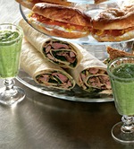 Сначала – обязательные закуски. Бейглы с семгой – безусловная американская классика; делают их и с другими видами рыбы, и с мясом, и с овощами.