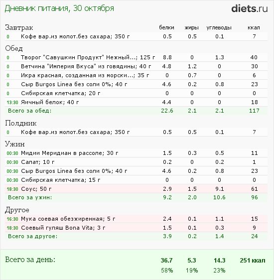 По питанию - печаль. Позволила себе продукты, которые не должна была употреблять, + сожрала много клетчатки сегодня, больше, чем должна была. Вот оно - отсутствие самодисциплины, вроде, и не хочешь есть лишнего, но все равно как-то оно само собой получается. Соус самодельный, оставался еще с поза-позавчера. Съелся сам собой ложкой прямо из тары, когда я залипла на просмотре холодильниковых богатств. Соевое мясо и соевая мука лежат на нижней полке в шкафу, спрятанные, и не особо мешают процессу, но мне пришлось полезть за блендером, который лежал там же, и я схомячила немного хрустелок. Укладываюсь в калорийность, но стыдно - если уж держать себя в ежовых рукавицах, то не выпускать.