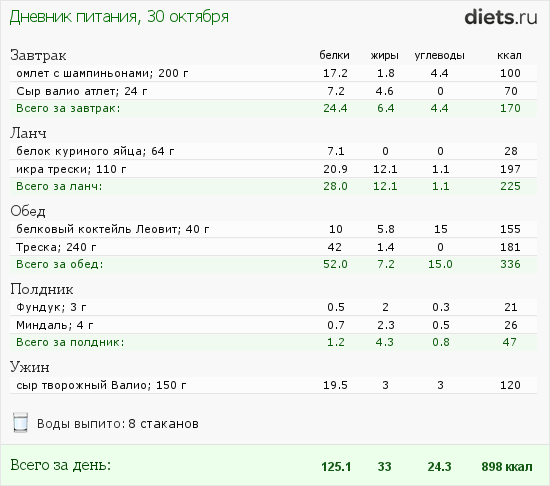 Вчера был первый белковый день второго цикла. Итак, я наела: