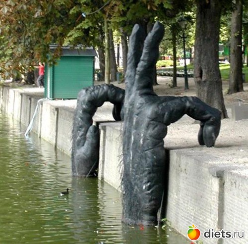А эта шутливая композиция в виде лап вылезающего из воды Кинг-Конга, установлена в Гааге.